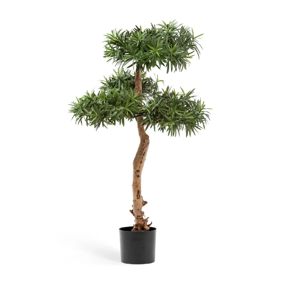 Подокарпус Элит — одно из самых высоких деревьев, представленных в категории бонсай. Его крона раскинулась на верхней части ствола.