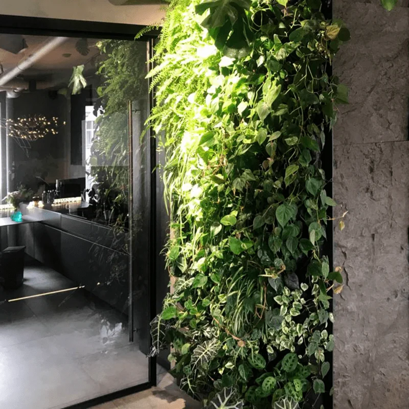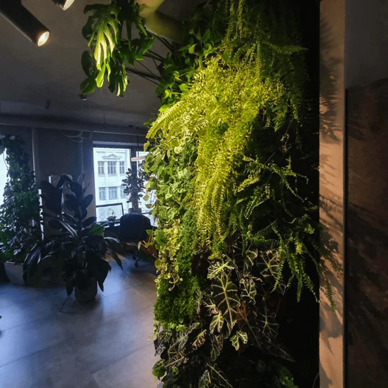 Вертикальное озеленение обеспечила эффектное дизайнерское решение, уникальное торговое пространства. Фитостена в шоу-руме является не только стильным элементом декора, но и создает неповторимую атмосферу бренда, подчеркивая его статус и индивидуальность.
