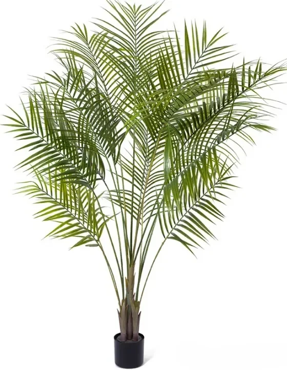 Искусственная пальма Арека — популярный выбор для интерьера и экстерьера. Она защищена от ультрафиолета и состоит из отдельных элементов с естественной кроной на тонких стволах.