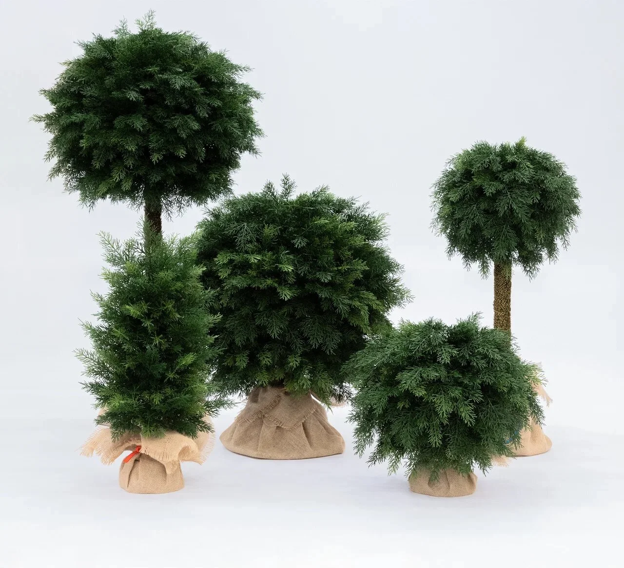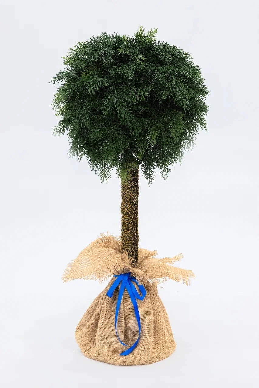 Искусственная туя на ножке с кроной в форме шара не требует ухода. Она вечнозеленая и не нуждается в регулярной стрижке.