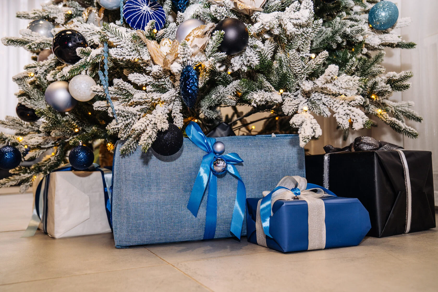 Эта ель словно явилась из самых глубин арктической зимы. Ветви покрыты инеем, а гирлянда оживляет каждый изгиб мягким светом. Белые и голубые игрушки сверкают, как далекие звезды, а синие акценты переливаются всполохами северного сияния. Всё это создает мистическую и завораживающую атмосферу праздника