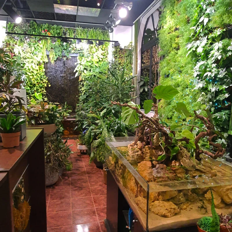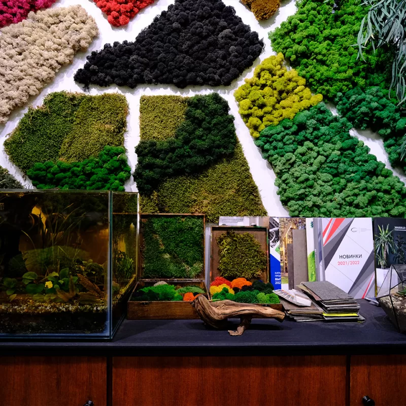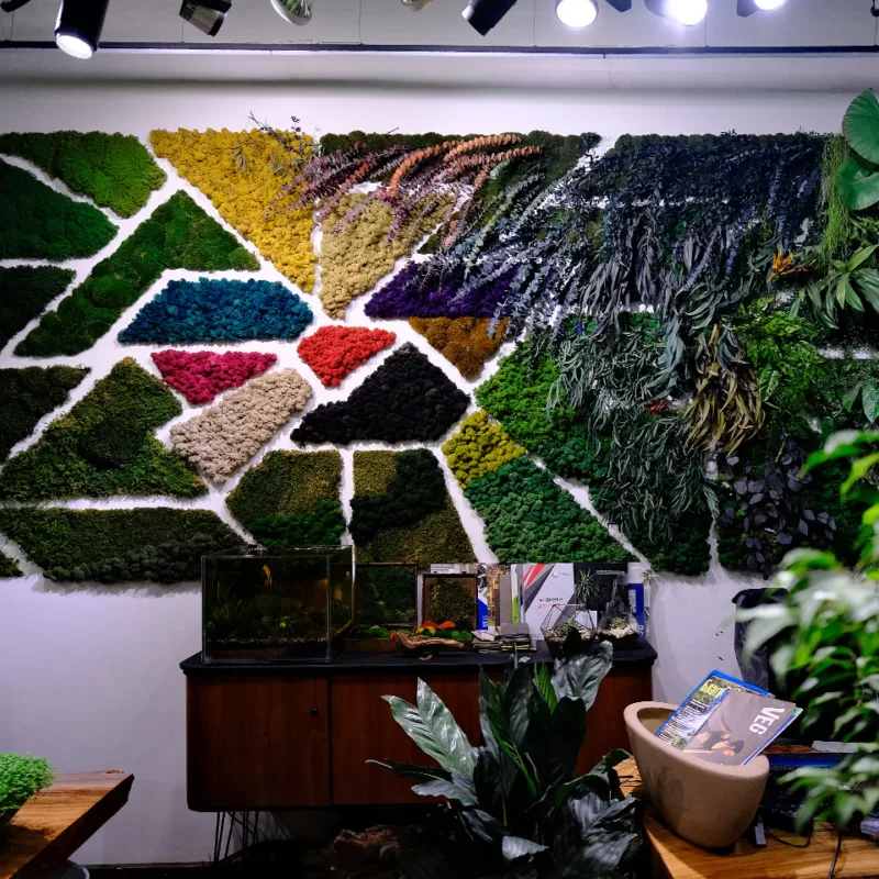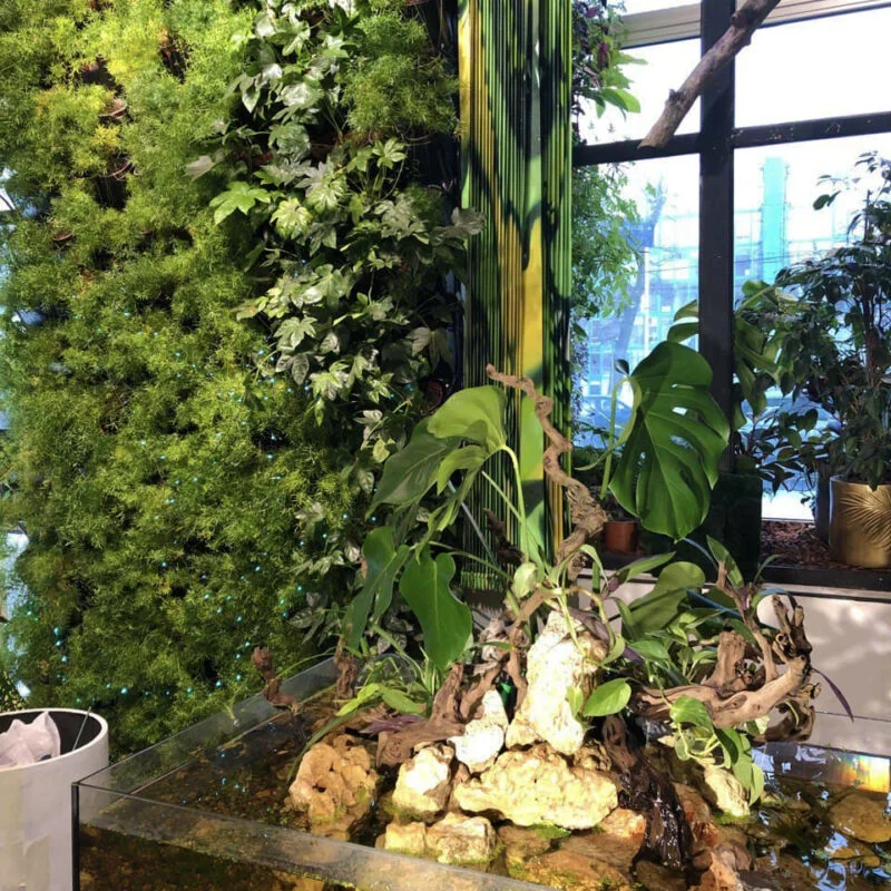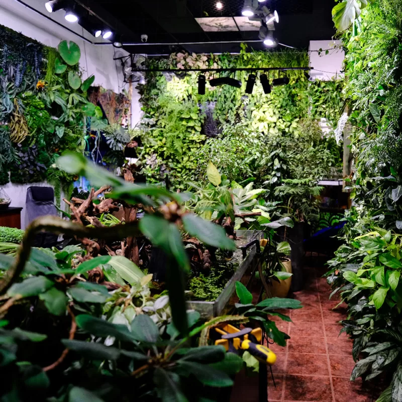 Магазин растений, декора и сопутствующих товаров нуждался в обновлении. Для создания уютной атмосферы природы использовали фитостены, декоративные панно и композиции с кашпо.