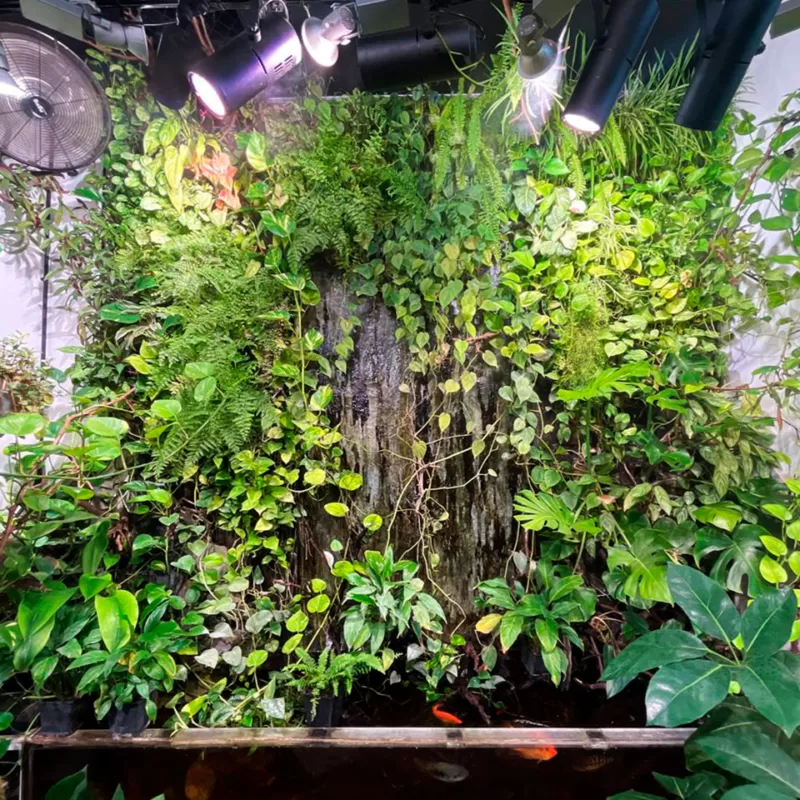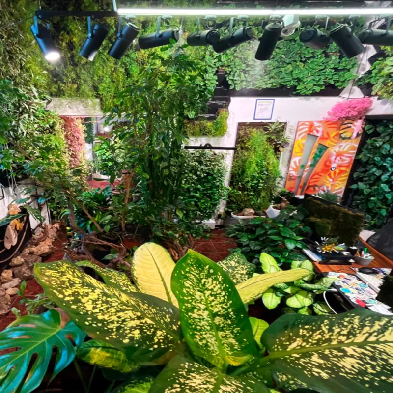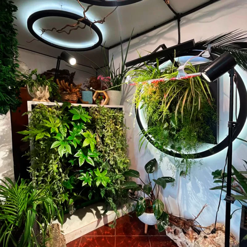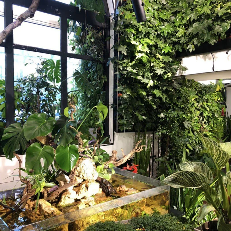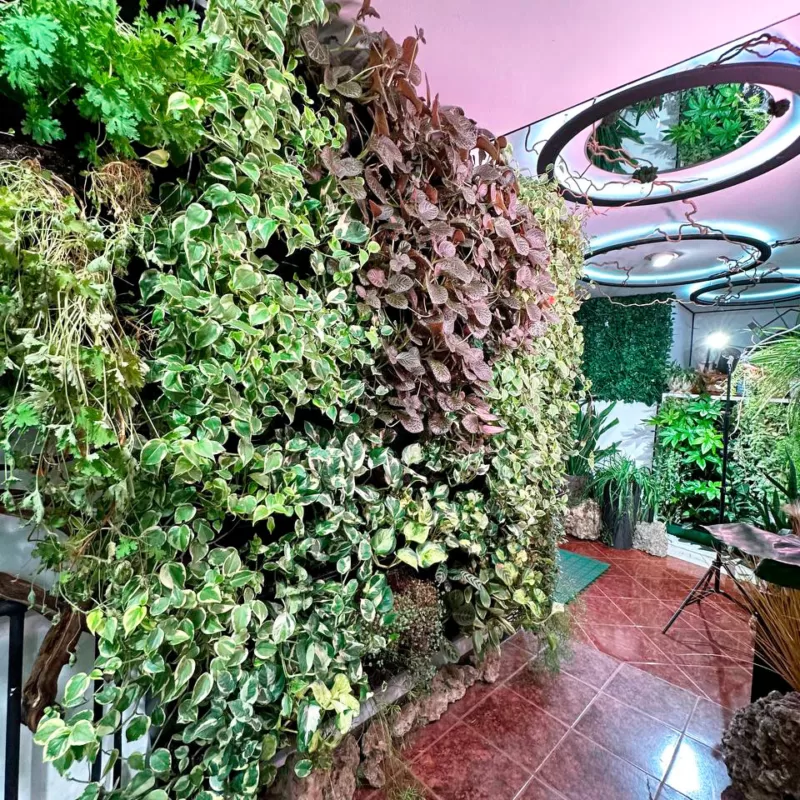 Магазин растений, декора и сопутствующих товаров нуждался в обновлении. Для создания уютной атмосферы природы использовали фитостены, декоративные панно и композиции с кашпо.
