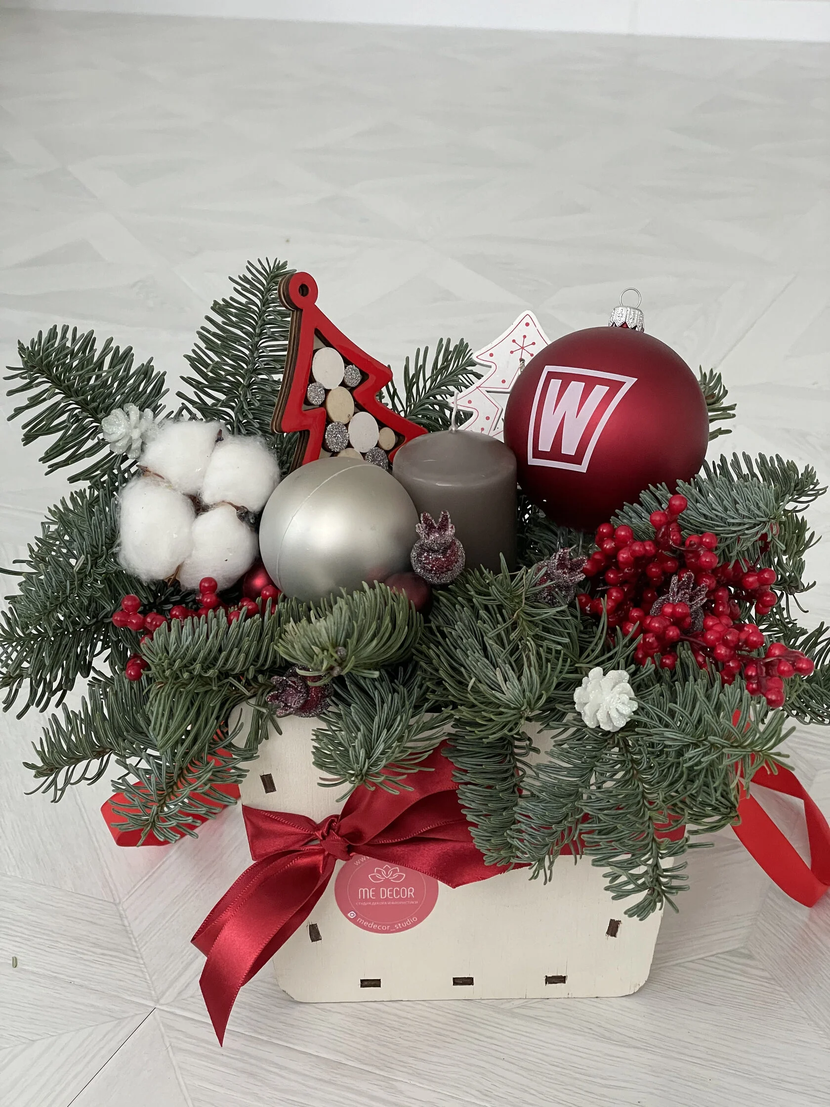 - Возможно изготовление композиции из искусственной хвои премиум-качества, декор другого цвета на выбор.