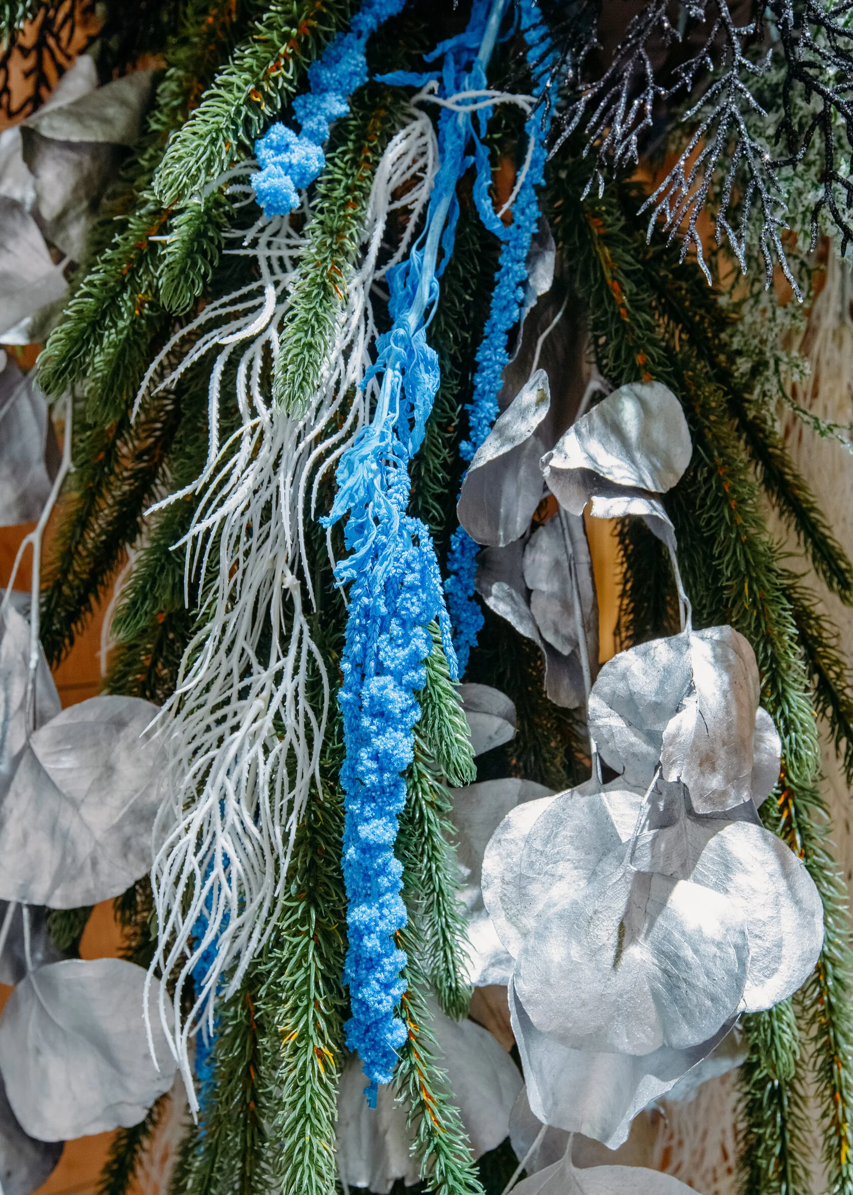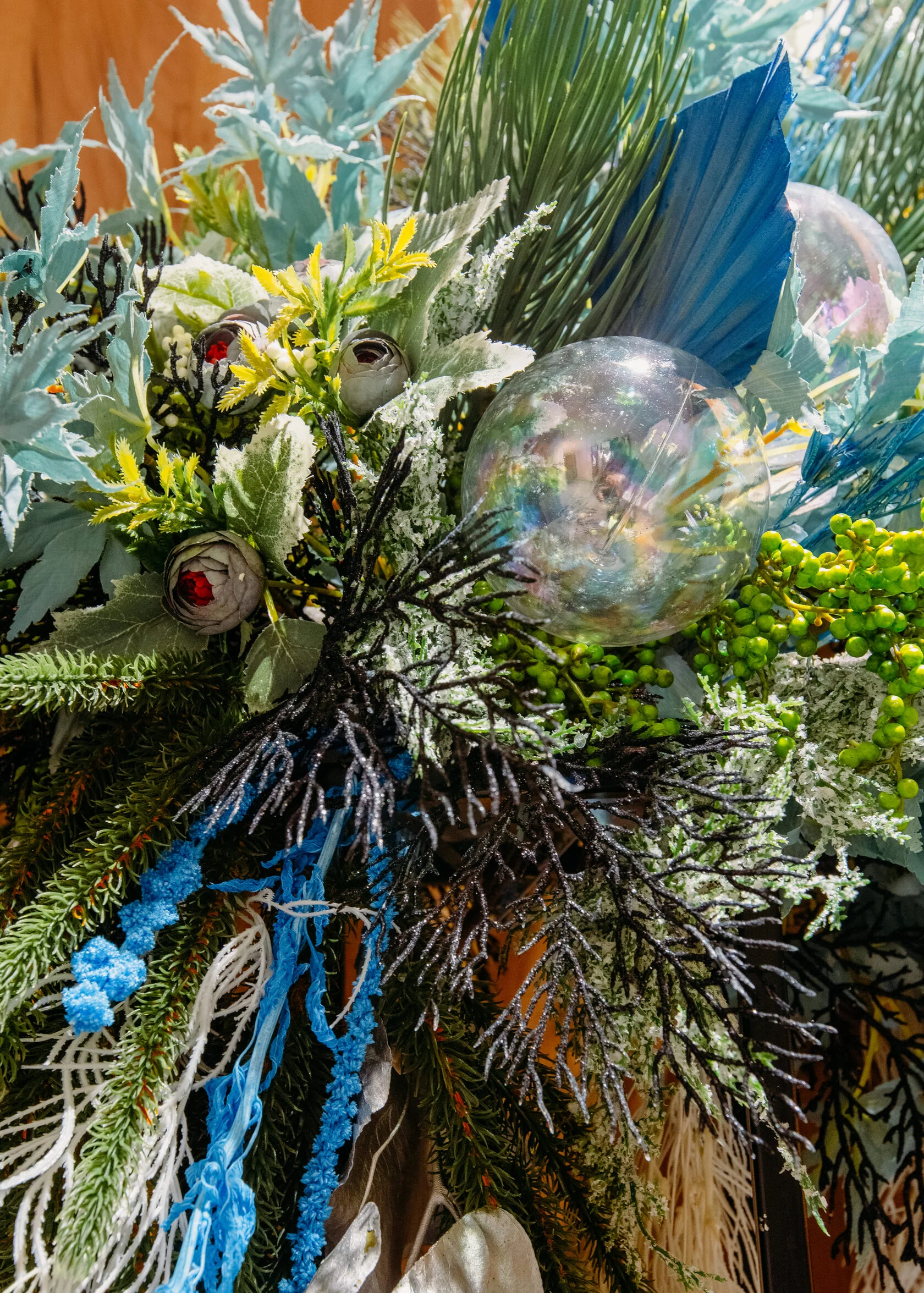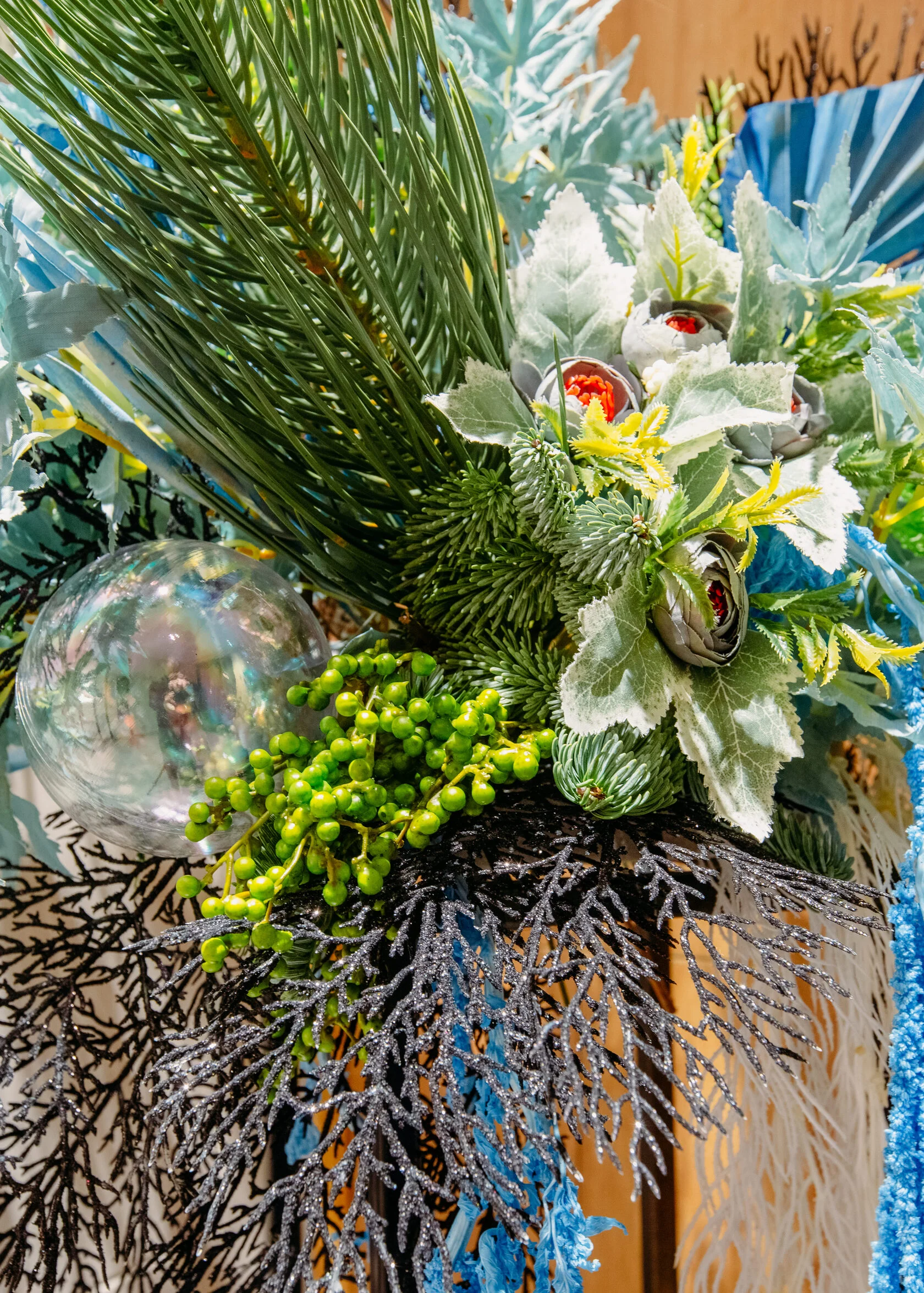 - Возможно изготовление композиции из живого датского ароматного лапника, декор другого цвета на выбор.