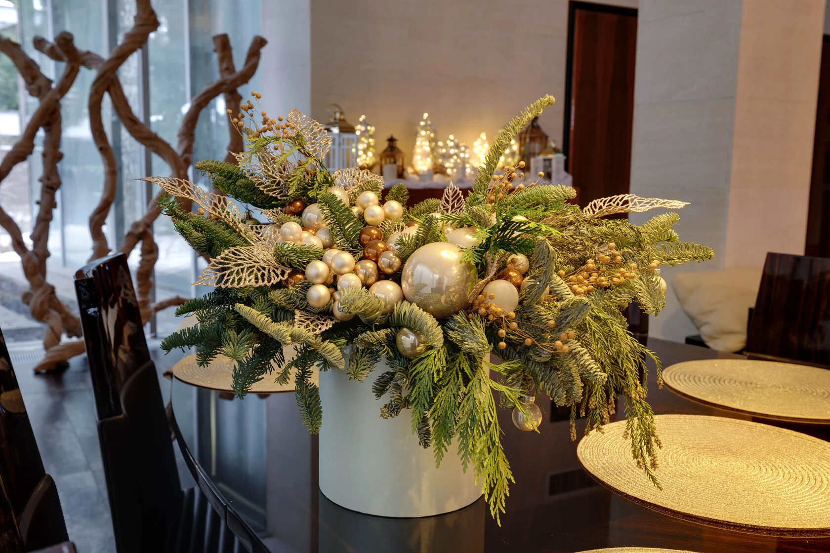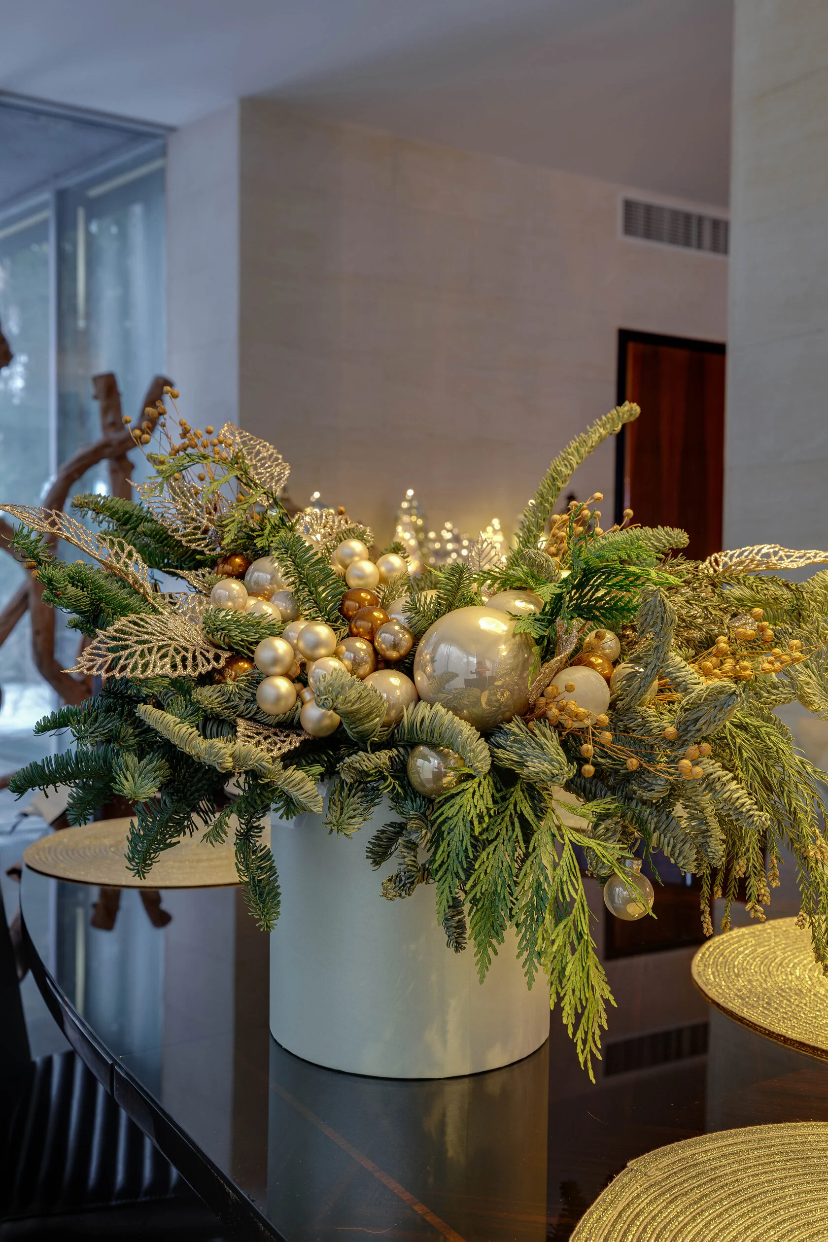 Пастельная элегантность! Представляем новую композицию из свежей хвои с жемчужными и кремовыми акцентами. Эти детали создают атмосферу уюта и утонченности. Погрузитесь в волшебную лесную симфонию и почувствуйте праздничное настроение!