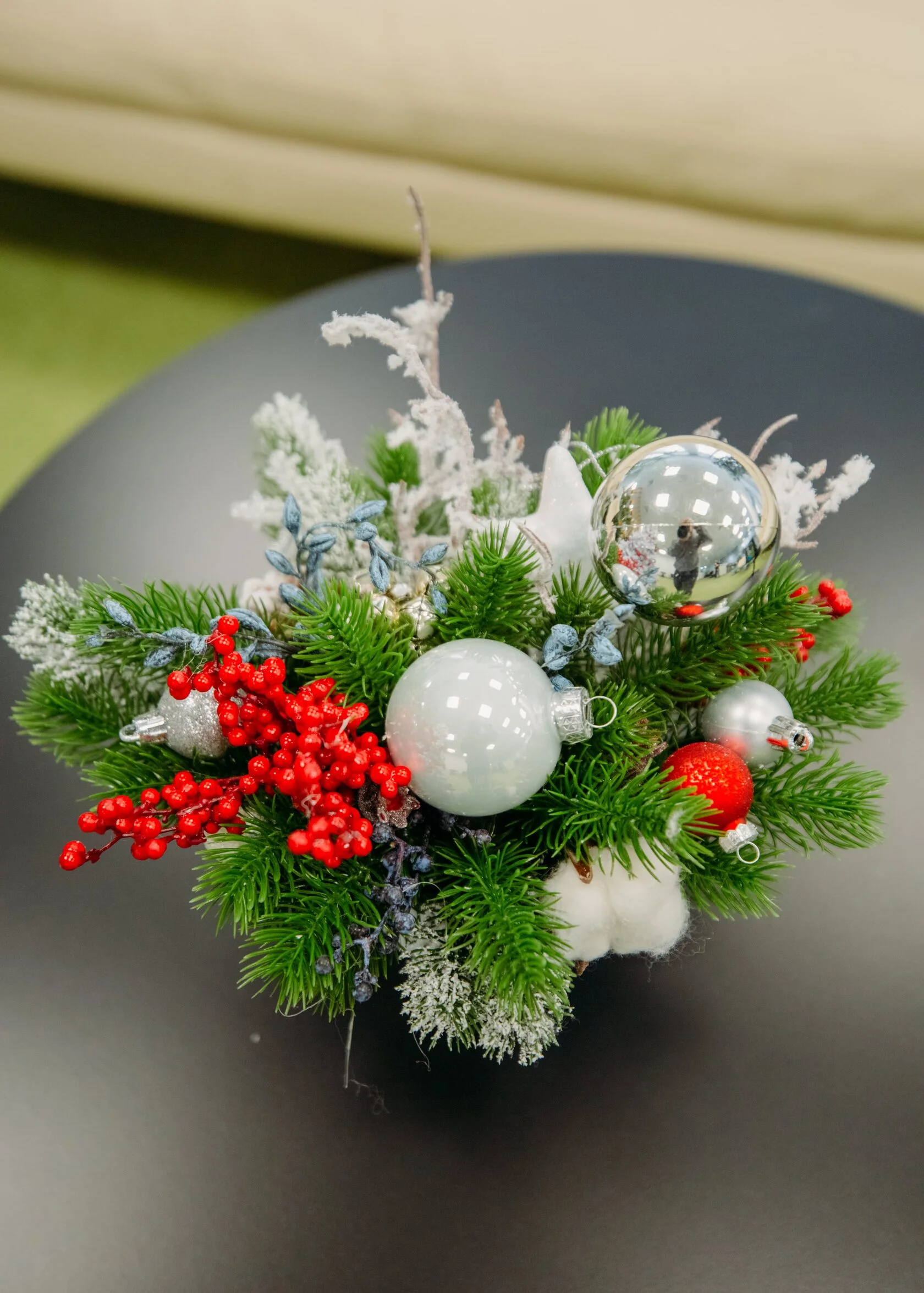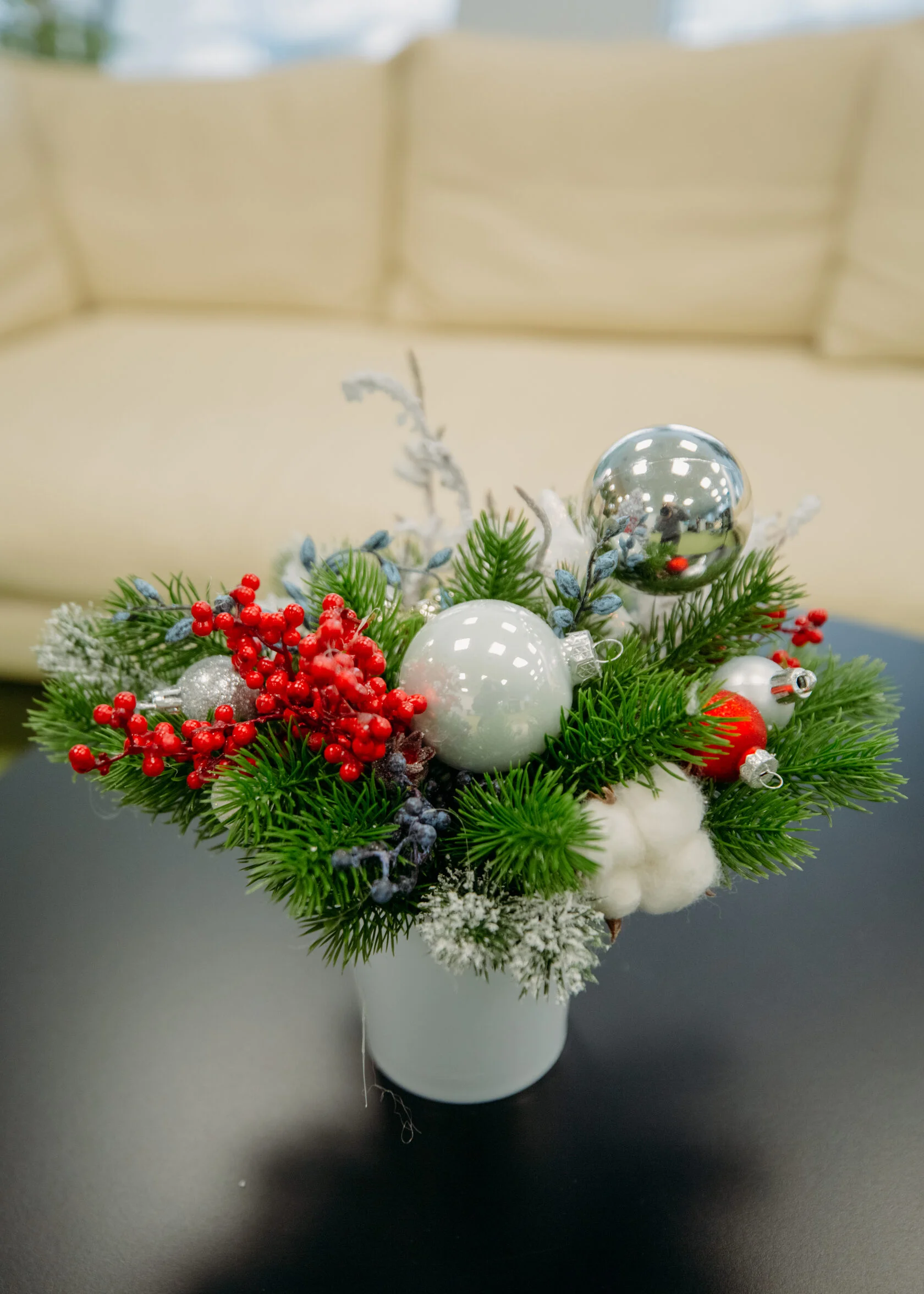 - Возможно изготовление композиции из искусственной хвои премиум-качества, декор другого цвета на выбор.