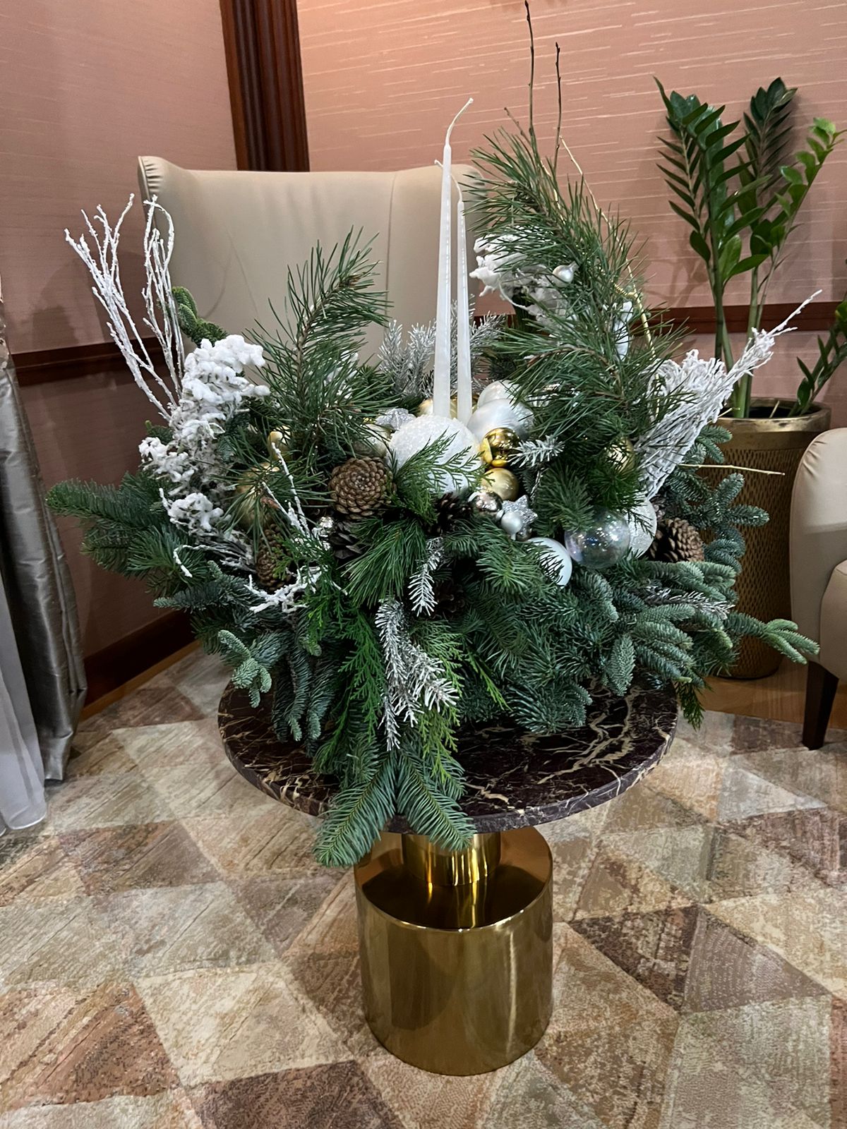 - Возможно изготовление композиции из искусственной хвои премиум-качества, декор другого цвета на выбор.
