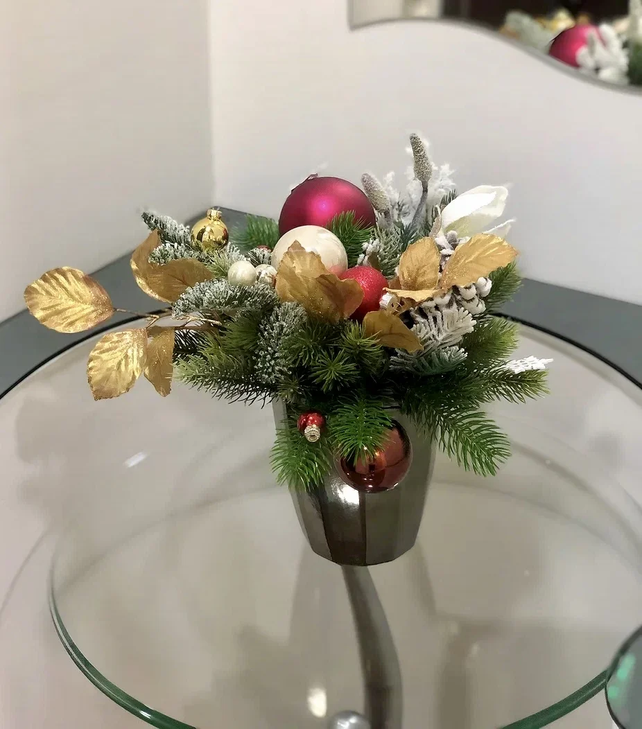- Возможно изготовление композиции из живого датского ароматного лапника, декор другого цвета на выбор.