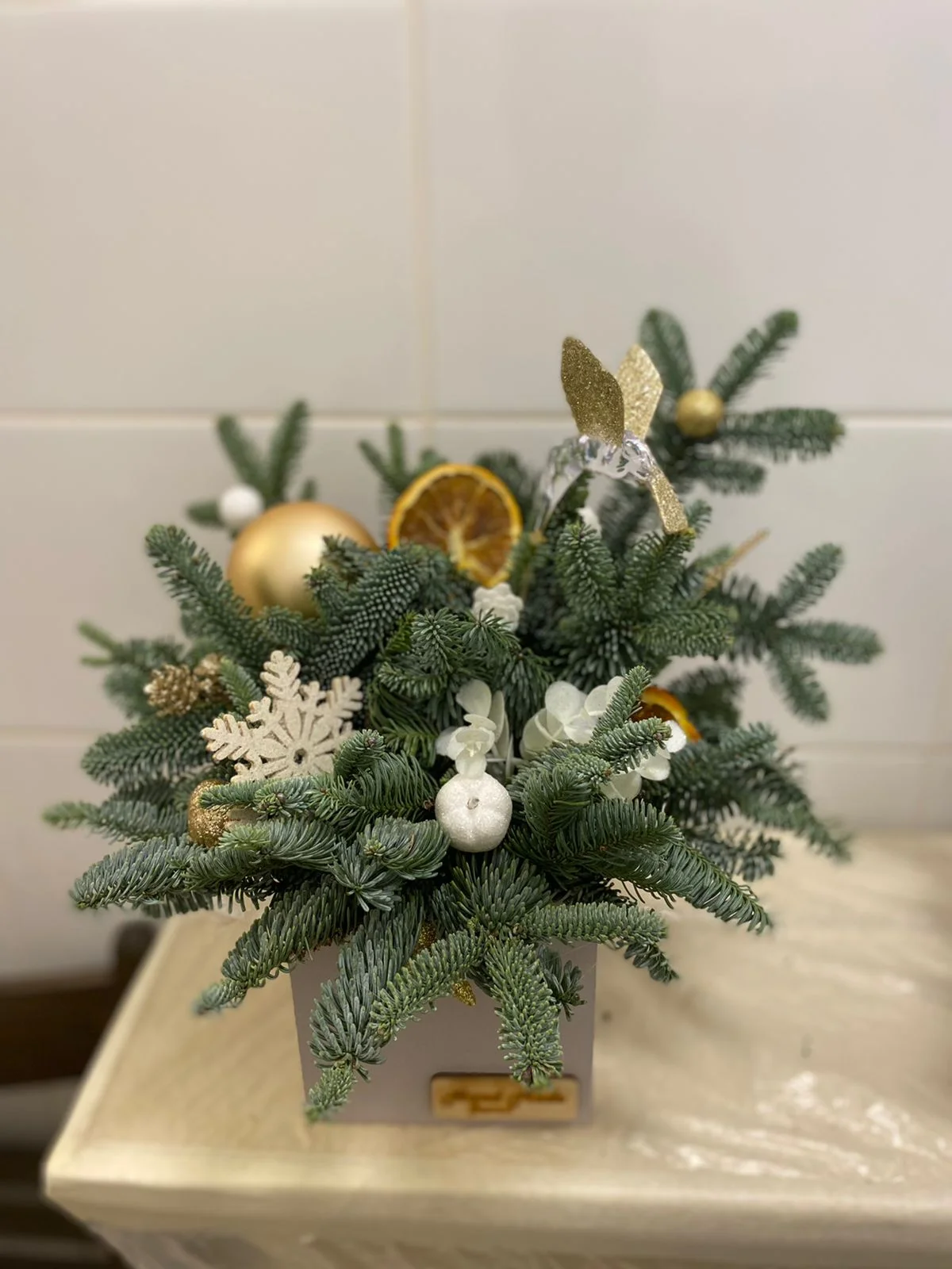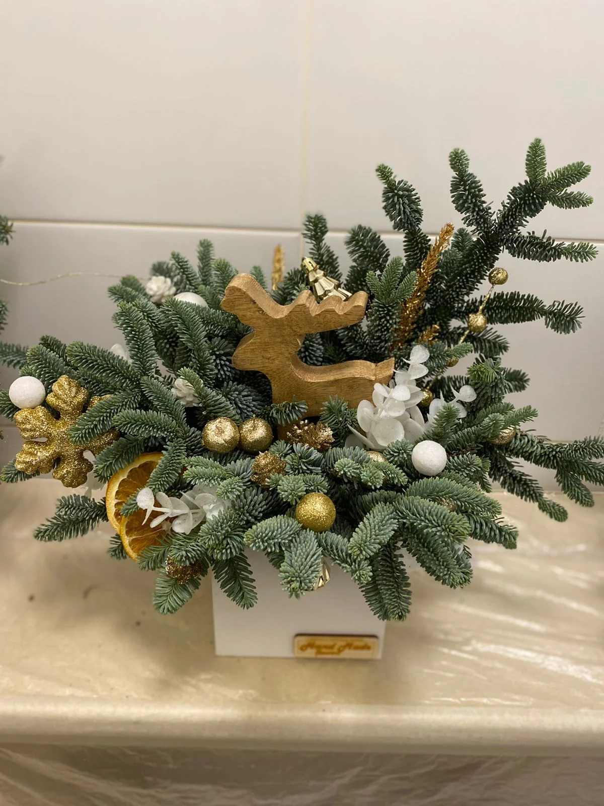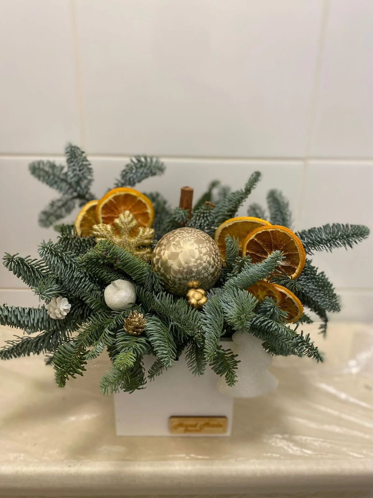 - Возможно изготовление композиции из искусственной хвои премиум-качества, декор другого цвета на выбор.