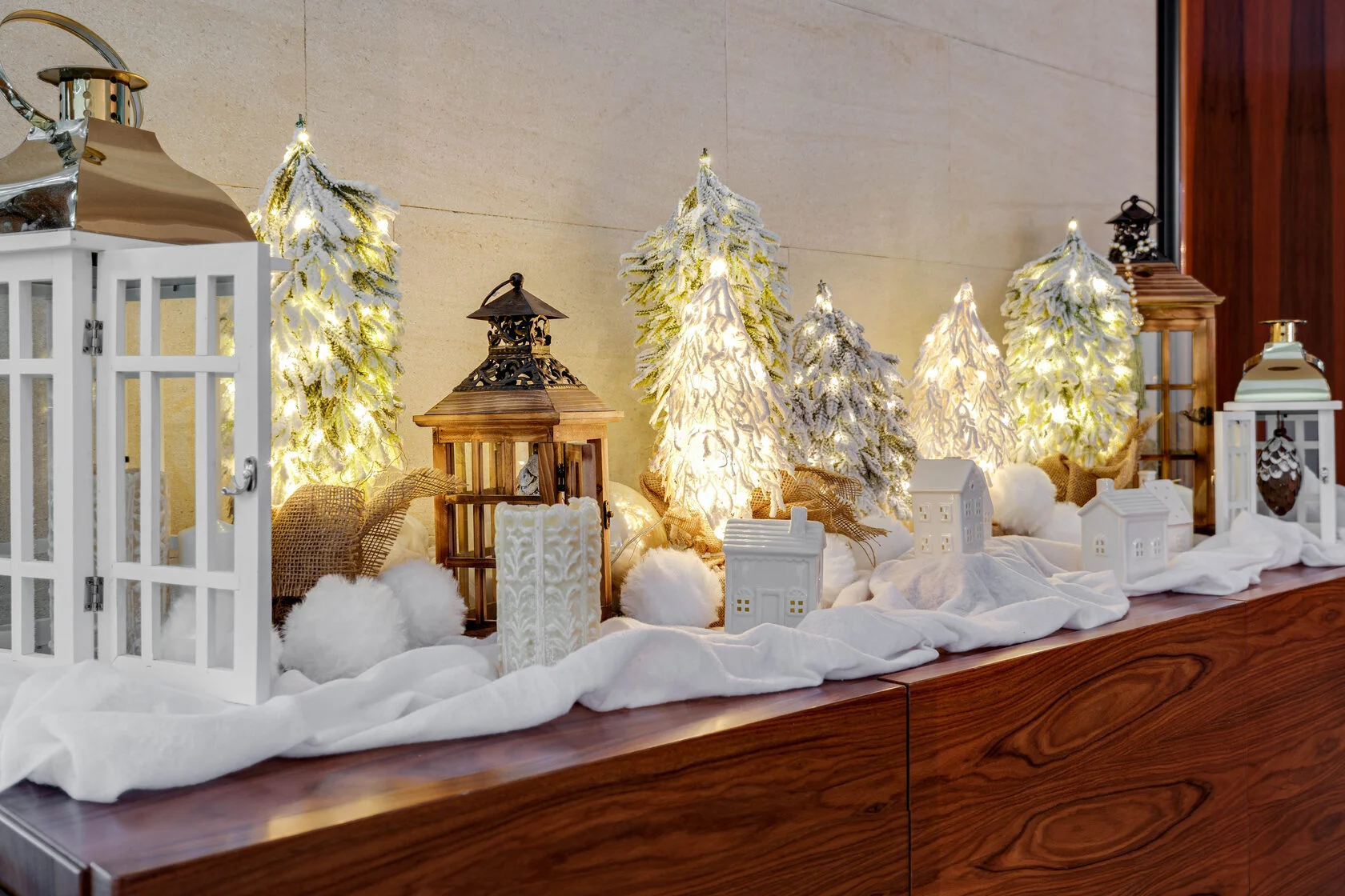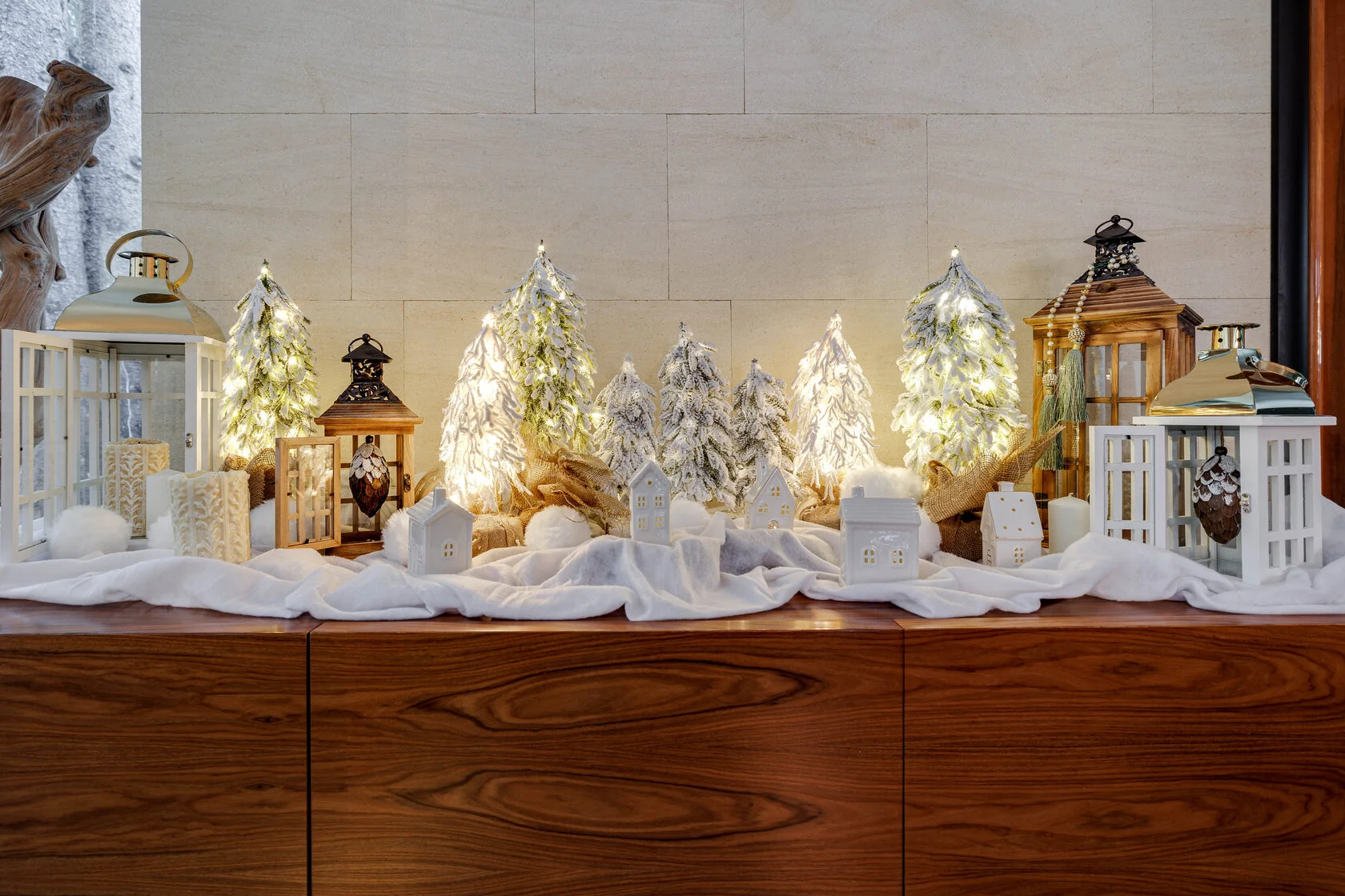 Окунитесь в волшебную атмосферу рождественского вечера, словно перенесённого из зимней сказки в заснеженную деревню. Эта миниатюрная композиция на деревянной поверхности воплощает собой зимнюю сказку. Нежные ёлочки, украшенные гирляндами, символизируют уют и тепло. Крошечные домики с золотистыми фонарями замерли в ожидании праздника, а мягкий искристый снег создаёт ощущение домашнего уюта и спокойствия.